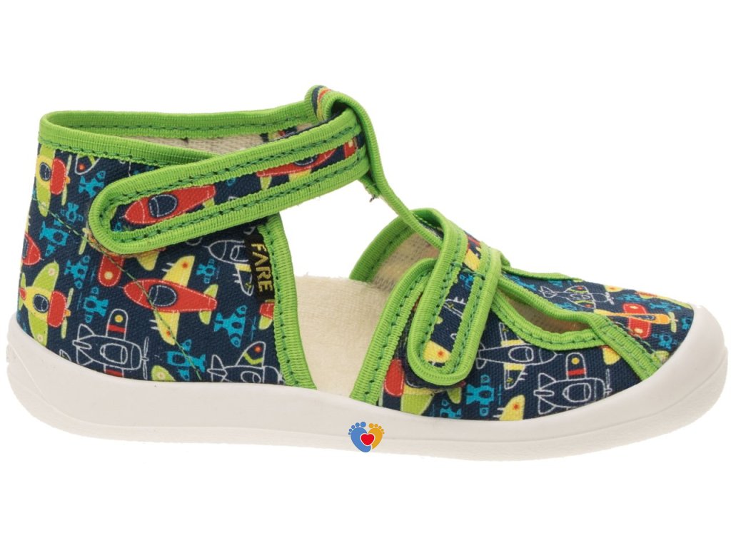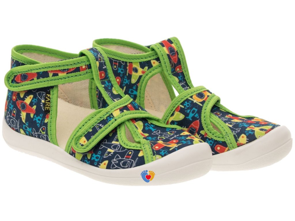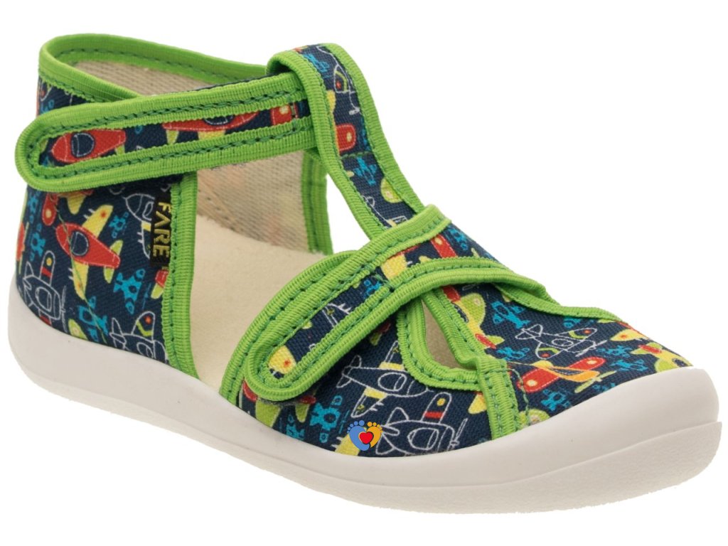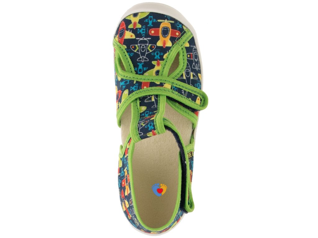 Detská domáca a prezuvková obuv zodpovedá ortopedickým požiadavkám a zásadám zdravého obúvania. Obuv je v prstovej časti priestorovo vytvarovaná, je vybavená pevným opätkom tak, ako je bežné u kvalitnej celokoženej obuvi. V spodnej časti priehlavku je pracka na suchý zips, čím sa veľmi dobre reguluje šírka papuče v oblasti priehlavku. Vkladacia stielka je vybavená komfortnou tlmiacou vrstvou a s podporou pozdĺžnej klenby.Spevnená vyššia päta lepšie stabilizuje členok, hlavne pri vybočovaní päty.Obuv je dizajnovaná v súlade s najmodernejšími módnymi trendami, vrátane podošvy, ktorá chráni prednú časť (špicu topánky) pred rýchlym opotrebovaním.