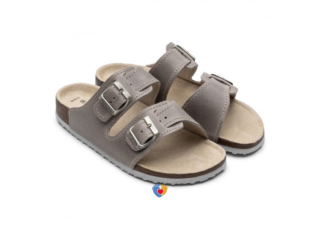 Zvršok z prírodnej kože v kombinácii s dvoma prackami zaručuje dokonalé prispôsobenie chodidlu. Vnútorná podšívka z prírodnej textílie navyše prispieva k príjemnému pocitu počas celého dňa.