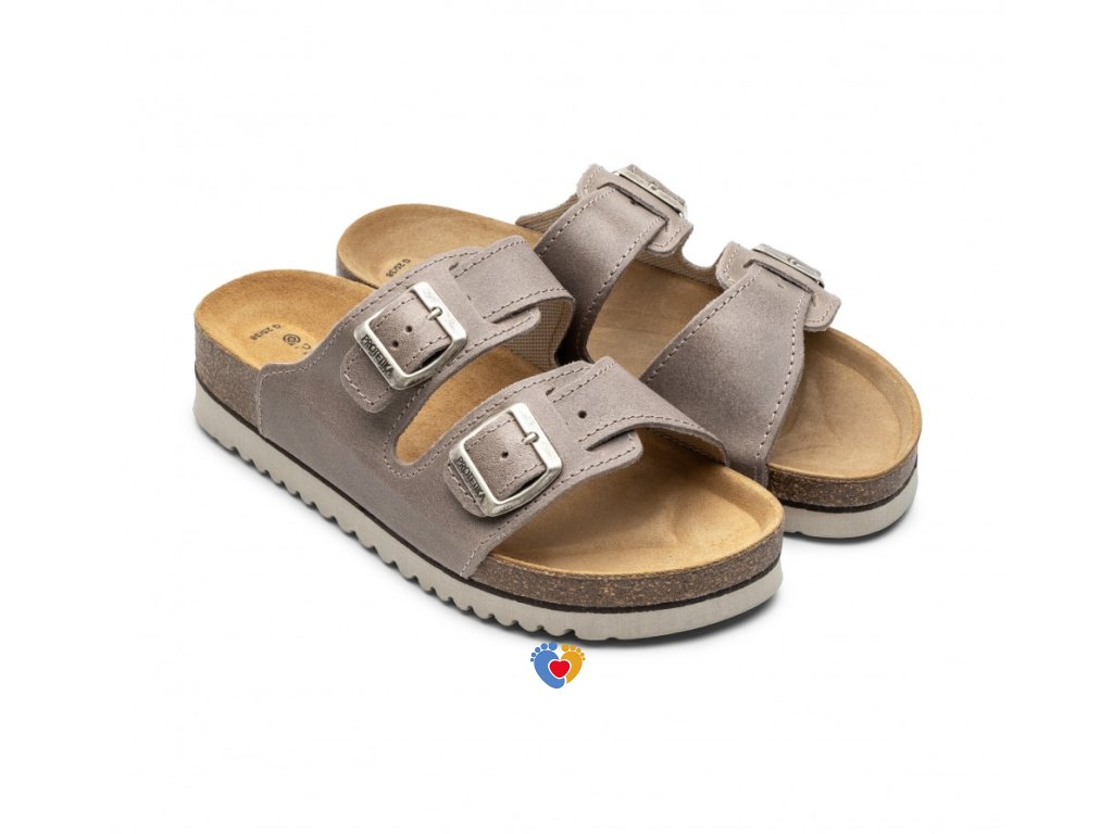 S dvojprackovým zapínaním si obuv jednoducho a rýchlo prispôsobíte. Zvršok z pravej prírodnej kože a anatomický výlisok z prírodného korku sú zárukou nielen kvality, ale aj prirodzeného pocitu.