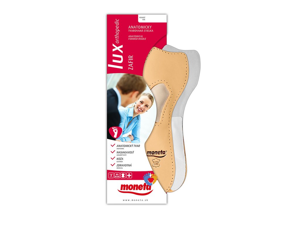 Moneta ortho system je technológia ortopedických stielok, ktoré znižujú bolesť chodidiel, chrbtice a kĺbov, znižujú stres,únavu a zaťaženie pohybového aparátu. Správne umiestnenie ortopedických penových vankúšikov a výliskov ako aj plastových anatomicky tvarovaných výliskov pre podporu priečnej a pozdĺžnej klenby chodidla zaručujú stabilitu a správnu polohu chodidla a zmierňujú tvorbu plochej nohy. O tlmenie nárazov pri dopade chodidla sa postará “shock absorber“ v pätovej časti chodidla.