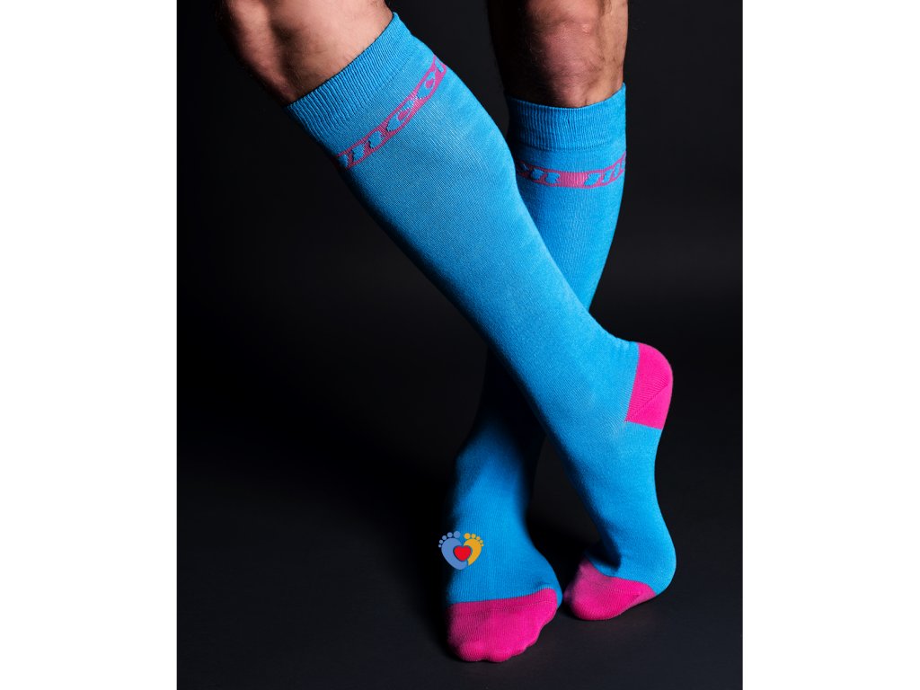 Podkolienky Moonsocks sú vyrobené pre radosť a pohodlie z nosenia. Pestré vzory spríjemnia aj ten najchmúrnejší deň. Základnou surovinou pri výrobe podkoleniek je česaná bavlna, ktorá je parafínovaná ( vlákna bavlny sú potiahnuté parafínom, čím sa stáva bavlna jemnejšia) . Bavlna je doplnená elastanom, ktorý zabezpečuje rozťažnosť a opakované sa vracanie podkolienky do pôvodného stavu a tvaru. Polyamidové vlákno zosilňuje podkolienku a zároveň zvyšuje odolnosť v najviac namáhaných častiach podkolienky(päta a špička podkolienky). Veľkou prednosťou podkoleniek je lem a špička. Lem podkolienky je špeciálne pletený. Zabraňuje padaniu podkolienky a zároveň netlačí, nespôsobuje žiadne otlačené miesta. Špička podkolienky je ukončená ručným retiazkovaním - jemný tenký šev, ktorý netlačí a nepôsobí hrubým dojmom ani pocitom. Podkolienky dokonalé obopínajú nohu a nevytvárajú záhyby. Veľkosť podkolienky je vhodná do obvodu lýtka max. 37cm.