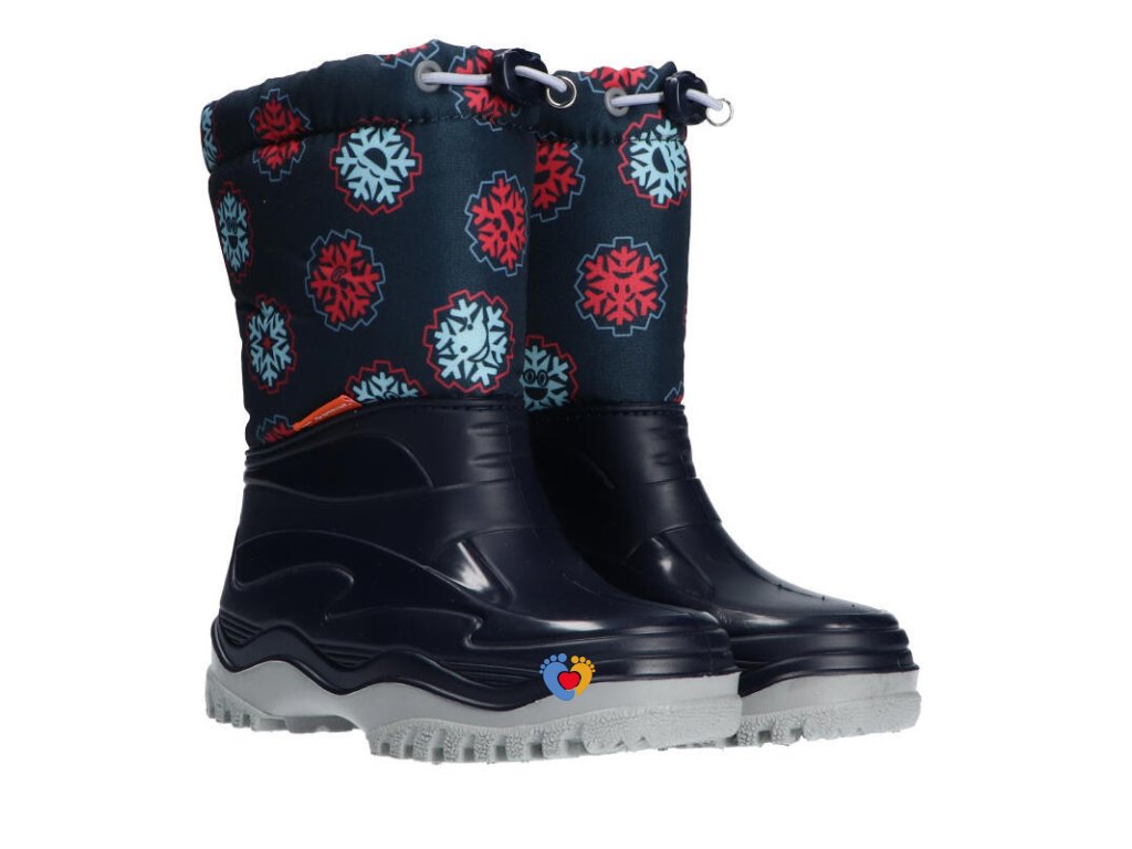 Novinka ZIMA 2021! Detské snehule DEMAR PICO LIGHT sú vhodné do zimného počasia. Nepremokavá spodná časť je vyrobená z PVC, vrchný diel je z odolnej textílie. Zateplenie je zo syntetického materiálu pevne všité do snehúľ. Je nevyberateľné. Šnúrka na zvršku umožňuje dobre zatiahnuť okolo nohy a tak zabraňuje padaniu snehu do vnútra obuvi. Snehule majú hrubšiu protišmykovú podrážku, ktorá zabezpečuje bezpečnosť chôdze. Farba snehúľ je tmavo modrá s motívom snehovej vločky. Vyrobené v EU. Model je vhodný na normálne a užšie chodidlo .