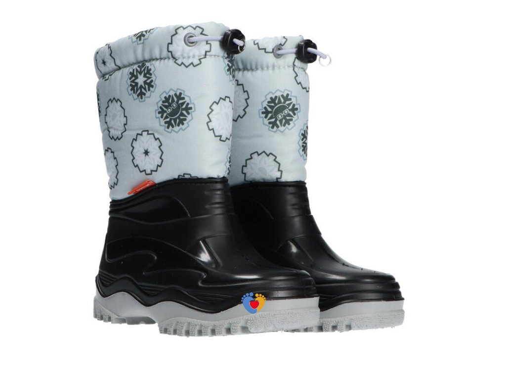 Novinka ZIMA 2021! Detské snehule DEMAR PICO LIGHT sú vhodné do zimného počasia. Nepremokavá spodná časť je vyrobená z PVC, vrchný diel je z odolnej textílie. Zateplenie je zo syntetického materiálu pevne všité do snehúľ. Je nevyberateľné. Šnúrka na zvršku umožňuje dobre zatiahnuť okolo nohy a tak zabraňuje padaniu snehu do vnútra obuvi. Snehule majú hrubšiu protišmykovú podrážku, ktorá zabezpečuje bezpečnosť chôdze. Farba snehúľ je tmavo modrá s motívom snehovej vločky. Vyrobené v EU.